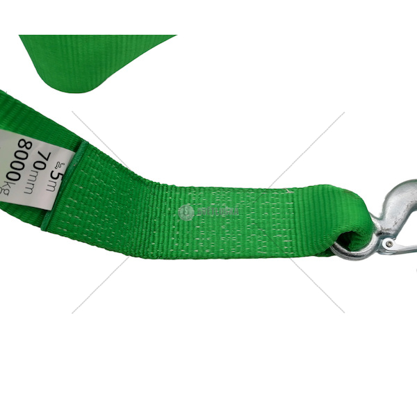 - Důvěřujte kvalitě a vyberte si pásové tažné lano s nosností 8000 kg, šířkou 70 mm a délkou 5 metrů s háčky na obou koncích, abyste zajistili svou bezpečnost a klid na cestách.