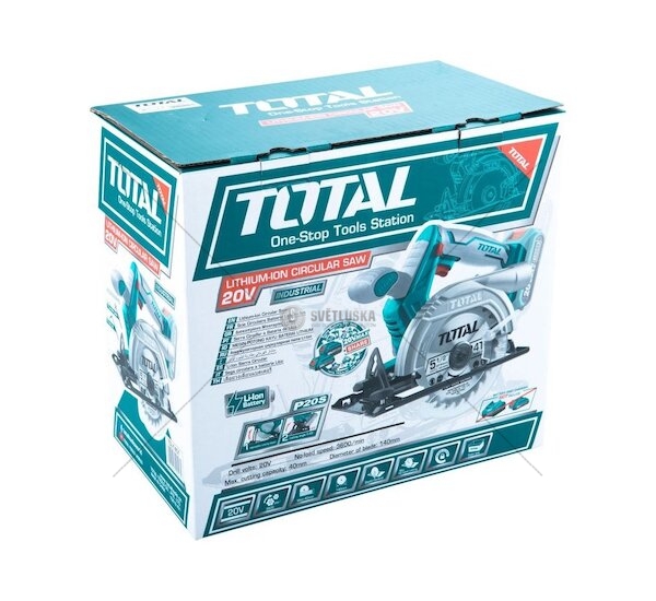 Aku kotoučová pila, 140mm, 20V Li-ion, 2000mAh, bez baterie a nabíječky, TOTAL