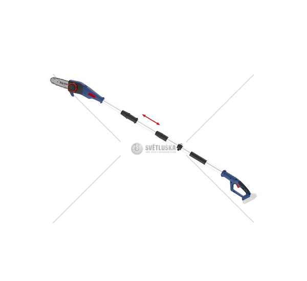 Akumulátorová vyvětvovací pila, určená k prořezávání vzrostlých stromů ze země. Prosvětlení korun stromů vyřezáním nadbytečných výhonů a rozvětvení; odstraňování prasklých, zlomených nebo suchých větví atp.Akumulátorová vyvětvovací pila AST 18, dodávaná bez akumulátoru a nabíječky („holé nářadí“). Rozsah použití, funkce, konstrukce i technické parametry viz AST 18-201-05 (58594).