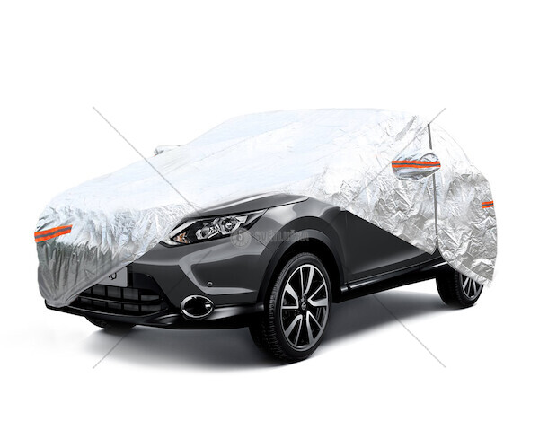 Popis produktu Autoplachta na SUV/VAN rozměr XL 510x185x150cm Kvalitní plachta použitelná v zimě i v létě. Vyrobeno z materiálu odolného vůči povětrnostním vlivům s gramáží 120g/m2 potaženého reflexní fólií, která dokonale odráží sluneční paprsky. Vnitřní vrstva plachty je vyrobena z měkké bavlny, která chrání lak před poškrábáním. Plachta má zip pro přístup do auta bez odstranění plachty. 6 reflexních pruhů našitých na plachtě zlepšuje její viditelnost v noci a přezky, které jsou součástí sady, chrání plachtu před větrem. Baleno v pohodlné tašce s ouškem. Plachta je určena k ochraně auta před prachem, deštěm, šťávou ze stromů a listím. Nepoužívat v místě vystavení příliš vysokým teplotám (může poškodit lak). Nepoužívat dlouhodobě venku na vzduchu. Vhodné mimo jiné pro následující modely aut: Audi Q7 BMW X5, X6 Chrysler Grand Voyager, Pacifica Fiat Ulysse Ford Galaxy, Ranger Infiniti QX 70 Jeep Cherokee, Wrangler Unlimit Land Rover Discovery, Freelander, Range Rover Mercedes GL, ML Mitsubishi Pajero IV (5drzwiowy) Nissan Navara III, Patrol IV, Murano Opel Antara Porsche Cayenne,Macan Renault Espace, Kangoo III Skoda Kodiaq Subaru Tribeca Toyota Hilux, Land Cruiser VW Amarok, Sharan, Touareg Volvo XC90