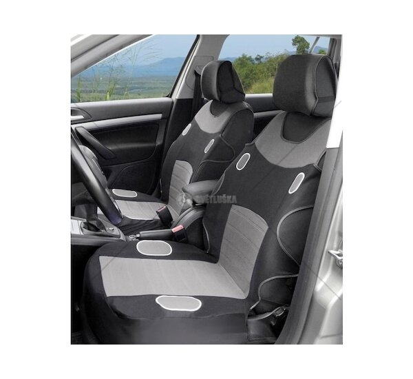 sada na přední sedadla, materiál polyester 100%, barva černo-šedá