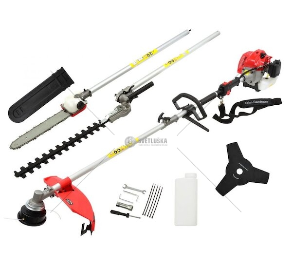 🔹 Silný motor – dvoutaktní benzínový motor s výkonem 3 HP (2,237 kW) a objemem 52 cm³ zajistí spolehlivý výkon i v náročných podmínkách. 🔹 4 v 1 – maximální flexibilita – snadná výměna nástavců umožňuje použití jako strunovou sekačku, křovinořez, řetězovou pilu a nůžky na keře. 🔹 Ergonomický design – pohodlná rukojeť a ramenní popruh zajišťují komfortní práci bez zbytečné námahy. 🔹 Velká palivová nádrž – objem 850 ml umožňuje dlouhou dobu provozu bez častého doplňování. 🔹 Odolná konstrukce – pevná hřídel a kvalitní materiály zaručují dlouhou životnost a spolehlivost.