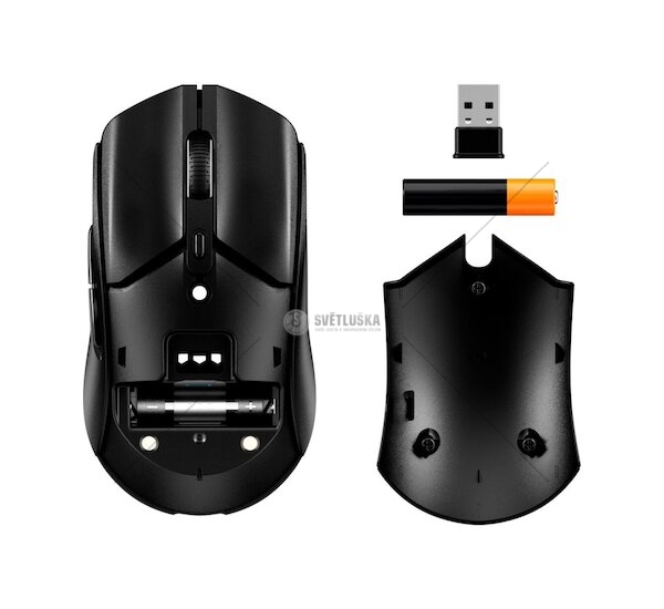 6 tlačítek, bezdrátové 2.4 GHz + Bluetooth 5.0, až 12 000 DPI, výdrž baterie až 100 hodin na jedno nabití