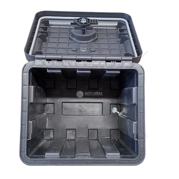 Kvalitní profilovaný box je možno namontovat vertikálně i horizontálně. Otočný zámek je těsněný a dodáván se dvěma klíči. Box je speciálně navržen pro montáž na přívěs a má zesílené dno a také montážní body. Vhodný pro kamiony, přívěsy, návěsy, dodávky.