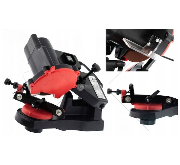 Bruska- ostřička řetězů elektrická, s brousícím kotoučem. Velmi lehká a oblíbená bruska pro ostření řetězů různých značek a typů.