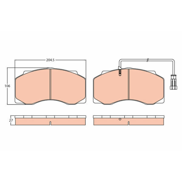 Brzdové destičky DAF 29077 MDP3077 jsou komponenty brzdového systému určené pro nákladní vozidla DAF. Tyto destičky jsou navrženy pro spolehlivé a efektivní brzdění. Jsou kompatibilní s brzdovými systémy WABCO 1600 V-G. Dodávané brzdové destičky obsahují uzávěrný výstražný kontakt, který signalizuje opotřebení destiček a potřebu výměny. Parametry destiček zahrnují šířku 204.5 mm, výšku 106 mm a tloušťku 27 mm. Varovný odstup činí 390 mm. Destičky jsou označeny zkušební značkou E9 90R-02A1249/1093, což potvrzuje jejich shodu s příslušnými normami a předpisy. Pravidelná kontrola a včasná výměna brzdových destiček jsou klíčové pro zajištění bezpečnosti provozu a optimálního brzdného účinku. Použití kvalitních brzdových destiček přispívá ke snížení opotřebení brzdového kotouče a prodlužuje životnost celého brzdového systému. Tyto destičky jsou vhodné pro intenzivní provoz a náročné podmínky. Díky přesnému zpracování a kvalitním materiálům zajišťují dlouhou životnost a spolehlivý výkon. Brzdové destičky DAF 29077 MDP3077 představují optimální řešení pro náročné aplikace v nákladní dopravě.