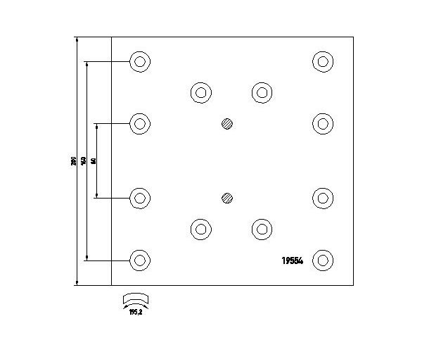 Brzdové obložení Iveco, typ 19553/19554, od výrobce Lumag, katalogové číslo 19554 00 101 10. Toto obložení je určeno pro brzdové systémy s klínovým brzdovým mechanismem (Wedge Brake). Je dodáváno se srpovitým obložením a je kompatibilní s uzávěracím výstražným kontaktem pro uzávěrací výstražný ukazatel. Rozměry obložení zahrnují vnitřní délku oblouku 193.7 mm a tloušťku 21 mm. Obložení je navrženo pro brzdové bubny o rozměru 410 mm. Obsahuje 12 děr pro nýty a sada obložení obsahuje celkem 96 nýtů. Kvalita obložení odpovídá standardu D7141 a opravný stupeň je N. Doporučené příslušenství k tomuto produktu je uvedeno pod číslem 87001500. Šířka obložení činí 200 mm. Technická informace k produktu je 19553 2100 0 5 D7141. Toto brzdové obložení je navrženo pro spolehlivé a efektivní brzdění vozidel Iveco. Je vyrobeno z kvalitních materiálů pro zajištění dlouhé životnosti a optimálního brzdného účinku. Při výměně brzdových obložení se doporučuje vždy vyměnit obložení na obou stranách nápravy pro zachování rovnoměrného brzdného účinku a zabránění vibracím. Před instalací se ujistěte, že obložení je kompatibilní s vaším vozidlem a brzdovým systémem. Dodržujte doporučené postupy pro instalaci a utahování nýtů.