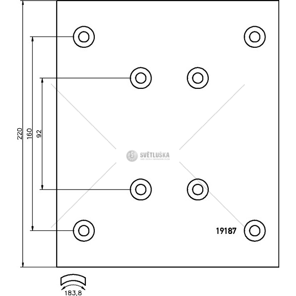 Brzdové obložení RVI 19187 od výrobce TEXTAR s označením 19187/18,5TEX je určeno pro brzdové systémy s S-Cam. Toto obložení, které se řadí mezi obložení s paralelním obložením, je kompatibilní s brzdovými bubny o rozměru 414 mm. Šířka obložení činí 220 mm a tloušťka 18,5 mm. Interní délka oblouku je 183,8 mm a obložení je opatřeno 8 otvory pro nýty. Sada obložení obsahuje celkem 64 nýtů. Doporučené příslušenství nese číslo 86002800 a technické informace jsou specifikovány číslem 19187 1850 0 8 T088. Toto brzdové obložení je vhodné pro údržbu a opravu brzdového systému, přičemž oprava je klasifikována stupněm N. Kvalita a jakost odpovídá standardu T088. WVA číslo obložení je 19187. Pro zajištění optimálního brzdného účinku a bezpečnosti se doporučuje pravidelná kontrola stavu brzdového obložení a jeho včasná výměna.