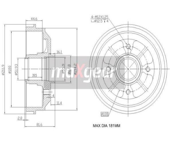 Brzdový buben MAXGEAR 19-0829