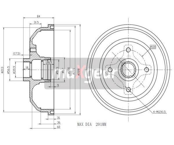 Brzdový buben MAXGEAR 19-0834