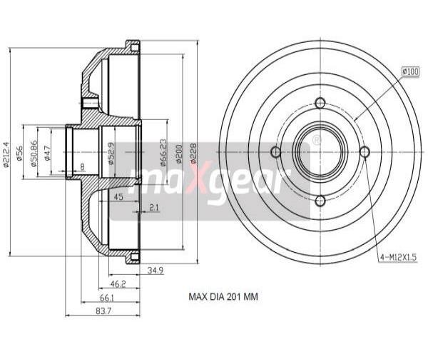 Brzdový buben MAXGEAR 19-2180