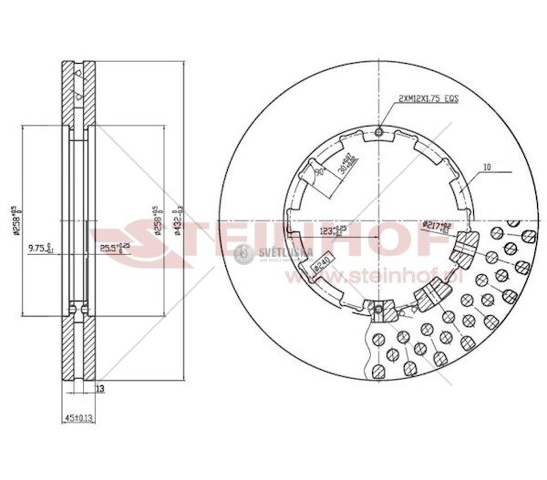Brzdový kotouč STEINHOF SMT008006 je určen pro zadní nápravu vozidel. Kotouč je vnitřně ventilovaný, což přispívá k efektivnějšímu odvodu tepla generovaného při brzdění. Tento náhradní díl je kompatibilní s brzdovými systémy vyžadující kotouč o vnějším průměru 432 mm a tloušťce 45 mm. Brzdové kotouče, nezbytné pro spolehlivé zpomalování a zastavení vozidla, jsou důležitou součástí bezpečnostního systému. Pravidelná kontrola a včasná výměna opotřebených kotoučů jsou klíčové pro udržení optimální brzdné účinnosti. Označení SMT008006 zajišťuje správný výběr dílu a jeho kompatibilitu s daným vozidlem. Tento kotouč je vhodný pro běžnou údržbu a opravy brzdového systému. Minimální povolená tloušťka brzdového kotouče je 37 mm. Na tento díl se vztahuje záruka 2 roky. Pro správnou funkci brzdového systému zvolte odpovídající díl a zajistěte jeho včasnou výměnu.