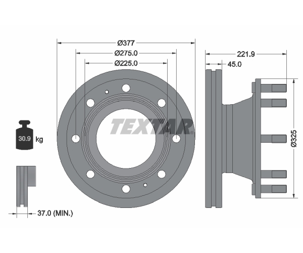 Brzdový kotouč 1cargo 140 Brembo, určený pro vozidla Iveco. Tento kotouč je vnitřně ventilovaný, což zajišťuje efektivnější odvod tepla a lepší brzdný výkon. Jeho vnější průměr činí 377 mm a síla brzdového kotouče je 45.0 mm. Minimální tloušťka kotouče je 37.0 mm a výška dosahuje 221.9 mm. Kotouč je opatřen osmi nebo deseti otvory pro šrouby. Kruhový vyvrt má průměr 275.0 mm a centrovací průměr je 225.0 mm. Hmotnost kotouče je 30.9 kg. Dodává se s ABS senzorem, ale bez náboje kola a se srouby vozidlového kola. Technické informace pod číslem 98200 3092 0 1. Rozměry balení jsou 39 cm (délka) x 39 cm (šířka) x 25.6 cm (výška). **Kód dílu: 09.A563.80**. Tento brzdový kotouč je navržen pro spolehlivé a bezpečné brzdění v náročných provozních podmínkách. Jeho konstrukce a materiály zajišťují dlouhou životnost a optimální výkon. Vnitřní ventilace kotouče přispívá k minimalizaci tepelné deformace a udržení konstantního brzdného účinku. Kompatibilita s ABS senzorem umožňuje integraci do moderních brzdových systémů vozidel. Kotouč je určen pro použití s originálními nebo kvalitními náhradními díly. Při výměně brzdového kotouče se doporučuje současně vyměnit i brzdové destičky pro zajištění optimálního brzdného výkonu a rovnoměrného opotřebení. Před instalací zkontrolujte kompatibilitu s konkrétním modelem vozidla a ujistěte se, že rozměry a technické parametry odpovídají specifikacím výrobce.