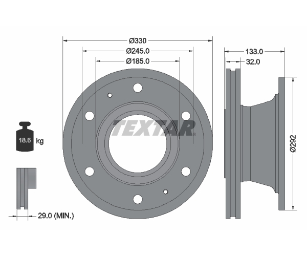 - Centrovací průměr: 185,0 mm