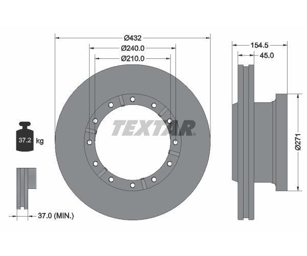 Brzdový kotouč BREMBO 09.9983.60 je určen pro brzdový systém vozidel. Tento díl je vnitřně ventilovaný a je kompatibilní s brzdovými systémy vybavenými ABS senzorem. Kotouč je dodáván bez náboje kola a bez šroubu vozidlového kola. Brzdový kotouč BREMBO 09.9983.60 je navržen pro optimální brzdný výkon a dlouhou životnost. Jeho konstrukce zajišťuje efektivní odvod tepla vznikajícího při brzdění, což přispívá k udržení stabilního brzdného účinku i při intenzivním používání. Vnější průměr kotouče je 432 mm a tloušťka 45,0 mm. Minimální povolená tloušťka kotouče je 37,0 mm. Kruhový vyvrt má průměr 240,0 mm a centrovací průměr je 210,0 mm. Kotouč obsahuje 100 zubů pro ABS kroužek. Technická informace 98200 2530 0 1 slouží pro jednoznačnou identifikaci dílu. Při výměně brzdového kotouče se doporučuje zkontrolovat stav brzdových destiček a dalších komponent brzdového systému a zajistit jejich správnou funkci. Počet děr v brzdovém bubnu je 12/12. Pro správnou funkci brzdového systému a zajištění bezpečnosti je nezbytná pravidelná kontrola a včasná výměna opotřebených dílů. Zvolte kvalitní brzdové kotouče BREMBO pro spolehlivé brzdění.