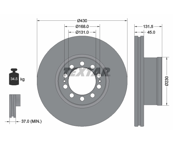Brzdový kotouč FEBI FE101734 je určen pro brzdový systém vozidel. Jedná se o vnitřně ventilovaný kotouč s vnějším průměrem 430 mm a silou 45,0 mm. Kotouč má 10 nebo 12 děr a centrovací průměr 131,0 mm. Technické informace pod číslem 98200 2912 0 1 specifikují konstrukční parametry dílu. Brzdové kotouče FEBI FE101734 jsou dodávány bez náboje kola a bez šroubu vozidlového kola. Minimální tloušťka brzdového kotouče je 37,0 mm a kruhový vyvrt je 168,0 mm. Při výměně brzdového kotouče je důležité zkontrolovat stav brzdových destiček a dalších komponent brzdového systému. Pravidelná kontrola a včasná výměna brzdových kotoučů přispívá k bezpečnému a spolehlivému brzdění. Tento díl je vhodný pro běžnou údržbu a zajišťuje optimální brzdný výkon. Objednejte si kvalitní brzdový kotouč FEBI FE101734 a zajistěte bezpečnost na silnici.