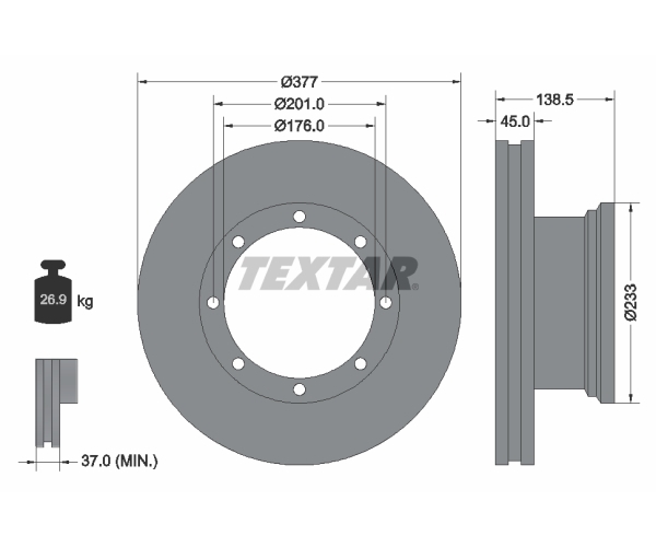Brzdový kotouč BREMBO 09.8925.10 je určen pro brzdové systémy vozidel. Tento vnitřně ventilovaný kotouč má vnější průměr 377 mm a sílu 45,0 mm. Minimální tloušťka brzdového kotouče je 37,0 mm a výška činí 138,5 mm. Kotouč je opatřen 8 otvory pro montáž. Kruhový vyvrt má průměr 201,0 mm a centrovací průměr je 176,0 mm. Hmotnost kotouče je 26,9 kg. Tento brzdový kotouč se dodává bez náboje kola a bez sroubů vozidlového kola. Rozměry balení jsou 41 cm (délka), 39,5 cm (šířka) a 16 cm (výška). Technické informace k dílu jsou uvedeny pod číslem 98200 1015 0 1. Správná volba brzdového kotouče přispívá k bezpečnému a efektivnímu brzdění. Včasná výměna brzdového kotouče je důležitá pro zachování optimálního brzdného účinku. Pro správnou funkci brzdového systému zvolte odpovídající díl a zajistěte jeho včasnou výměnu.