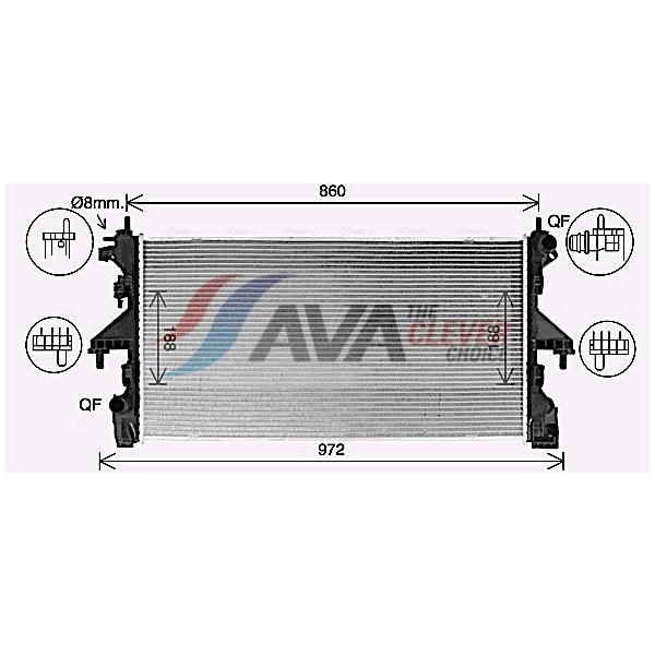 Chladič motoru AVA Clever Choice FT2481 je určen pro systémy chlazení motoru. Tento díl, známý také jako chladič, zajišťuje odvod tepla z motoru a udržuje optimální provozní teplotu. Chladič je vyroben z hliníku s mechanicky plněnými chladicími žebry, což zvyšuje efektivitu chlazení. Nádržka na vodu chladiče je vyrobena z umělé hmoty. Rozměry chladicí sítě jsou: hloubka 34 mm, délka 782 mm a šířka 416 mm. Chladič FT2481 je vhodný pro náhradu opotřebovaného nebo poškozeného chladiče a přispívá k bezproblémovému chodu motoru. Pravidelná kontrola stavu chladiče a včasná výměna jsou klíčové pro prevenci přehřátí motoru a zajištění jeho dlouhé životnosti. Pro správnou funkci chladicího systému se doporučuje používat kvalitní chladicí kapalinu a pravidelně kontrolovat těsnost spojů.