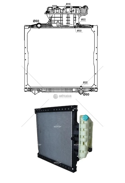 **Chladič vody pro MAN TGA, TGX, TGS (F2000) s číslem dílu 0212988_A** je klíčová součást chladicího systému nákladních vozů MAN. Tento chladič má rozměry **938 x 845 x 42 mm** a je dodáván **s rámem a expanzní nádobou**, čímž představuje kompletní řešení pro náhradu poškozených nebo opotřebovaných chladičů. Je navržen pro efektivní odvádění tepla z motoru, což zajišťuje optimální provozní teplotu a chrání motor před přehřátím. **Rám** zajišťuje stabilitu a pevnost chladiče a odolává náročným podmínkám provozu. **Expanzní nádoba** kompenzuje změny objemu chladicí kapaliny vlivem teplotních výkyvů, čímž přispívá k udržení správného tlaku v systému a předchází poškození komponent. Chladič je vyroben z kvalitních materiálů odolných proti korozi a mechanickému poškození, což zaručuje dlouhou životnost a spolehlivý provoz. Správná funkce chladiče je zásadní pro efektivní chlazení motoru a prodloužení jeho životnosti. Výměna chladiče by měla být prováděna s ohledem na doporučení výrobce vozidla a s použitím kvalitní chladicí kapaliny. Vzhledem k důležitosti této součástky pro provoz vozidla se doporučuje instalaci svěřit kvalifikovanému automechanikovi. Tento produkt je ideální pro uživatele, kteří hledají **originální náhradní díl pro vozidla MAN TGA, TGX a TGS s motorem F2000.**