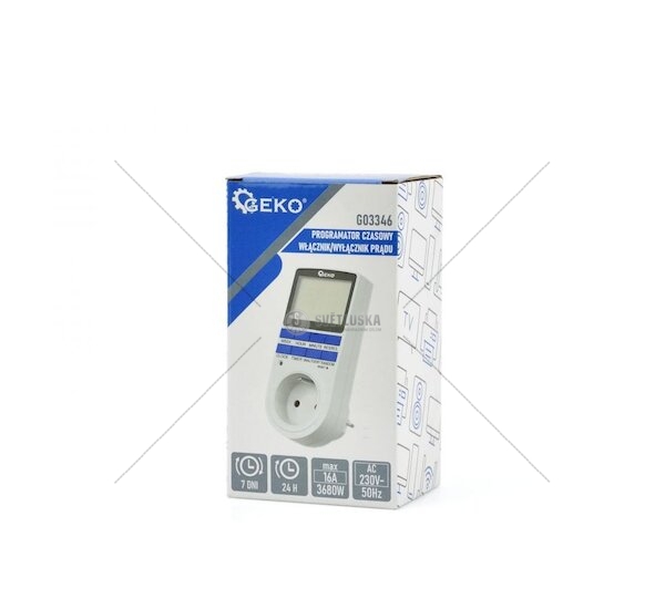 Časový programátor určený k ovládání zařízení napájených ze sítě 230 V. Zařízení umožňuje jednoduše plánovat den/dny a čas zapnutí a vypnutí připojeného zařízení. Použití programu časovače pomáhá šetřit energii, a tím snížit účty za elektřinu.