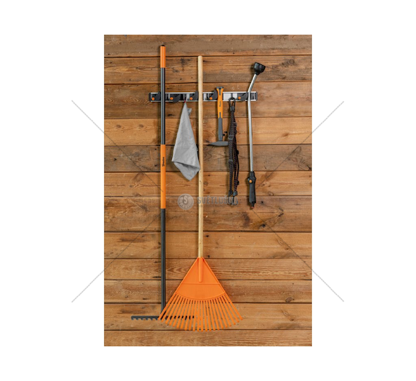 Držák je vhodný pro organizaci různého zahradního a dílenského nářadí jako jsou lopaty, hrábě, metle, kladiva a další nástroje standardních rozměrů. Díky volně posunovatelným držákům a háčkům si můžete uspořádání přizpůsobit přesně podle vašeho nářadí a požadavků.