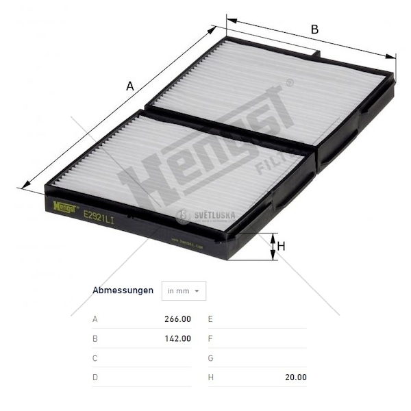 - Efektivní filtrace prachu, pylu a nečistot: Zajišťuje čistý vzduch v kabině pro pohodlí a zdraví řidiče.