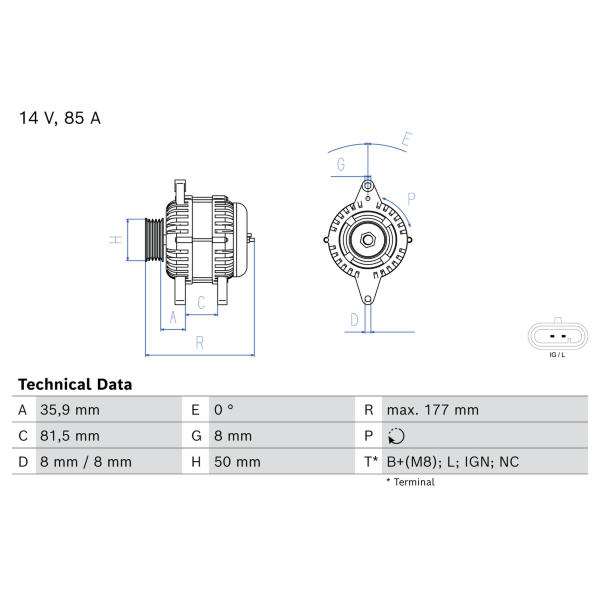 - Svorka:B+(M8), NC, L, IGN