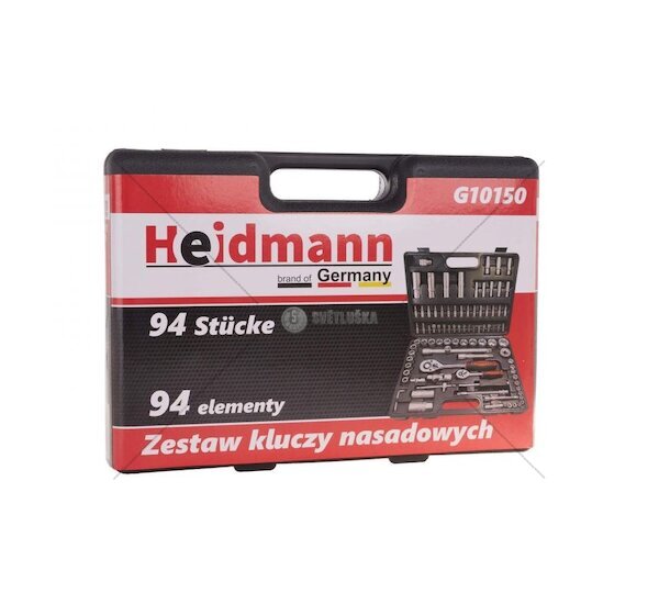 Gola sada Heidmann firmy GEKO typ G10150 - sada obsahující 94 kusů nejpoužívanějších nástrčných klíčů a bitů. Všechny nástroje jsou vyrobeny z chrom-vanadiové oceli. Tato sada by neměla chybět v žádné domácnosti, dílně nebo na chtě. Vybavena základním nářadím pro nejčastější opravy a servisní úkony kolem domácnosti, nebo v dílně, vše uloženo v praktickém kufru.