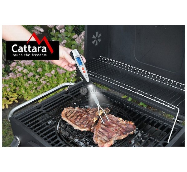 Praktický pomocník pro grilování opatřený digitálním teploměrem. U přístroje lze nastavit druh masa (hovězí, telecí, jehněčí, vepřové, kuře a krocan) a požadovaný stupeň propečení. Po dosažení nastavených teplot začne přístroj signalizovat zvukovým tónem.