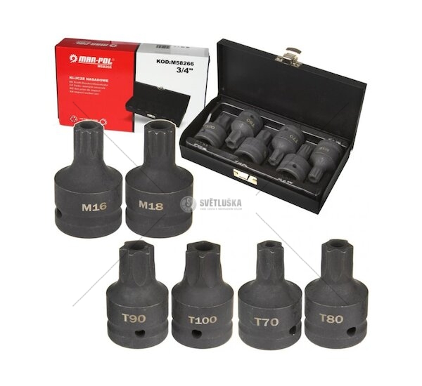 Hlavice rázové zástrčné 3/4" XZN M16, M18, TORX T70-T100, sada 6ks MAR-POL