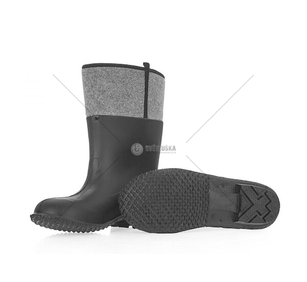 Holínky z PVC zateplené polyesterovým filcem a s protiskluzovou pryžovou podrážkou SR.