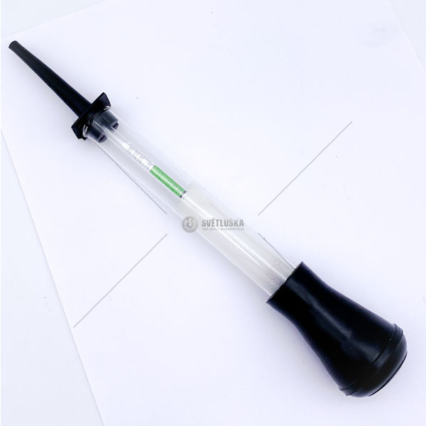 Hustoměr chladící kapaliny, plastový hustoměr s balónkem, nasávací trubicí a vnitřním plovákem, určený k měření náplně chladiče automobilu.