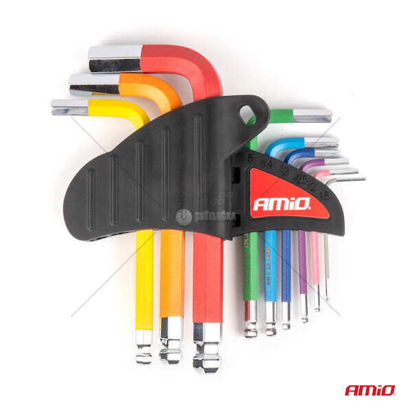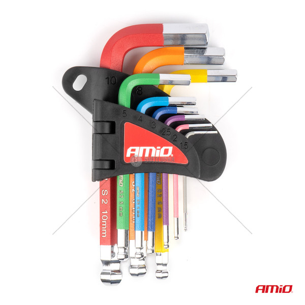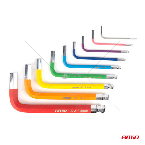 Imbusové HEX klíče s kuličkou z S2 oceli 9 ks AMiO-04298