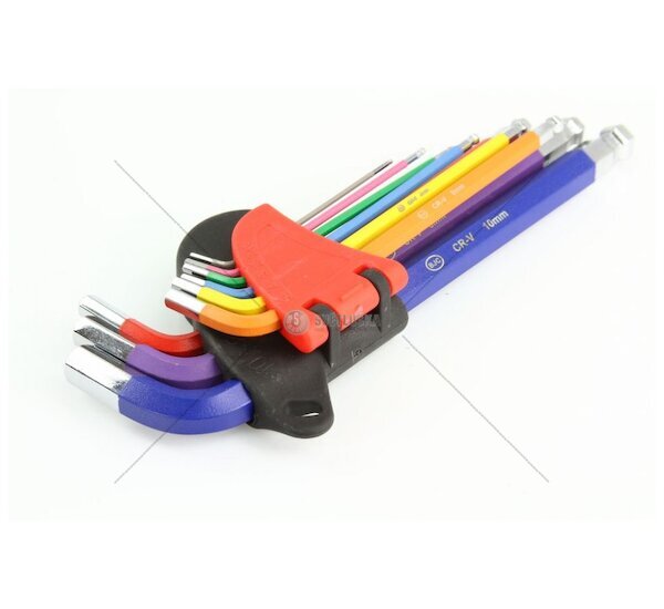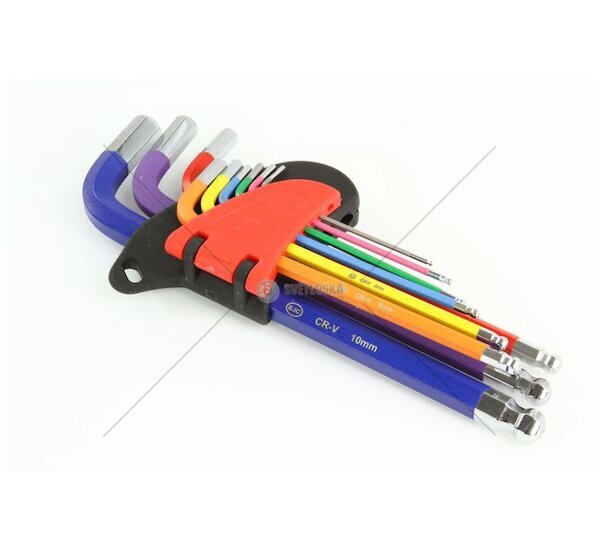 Imbusové klíče 1.5 - 10 mm v barevné sadě 9 ks z CrV oceli.