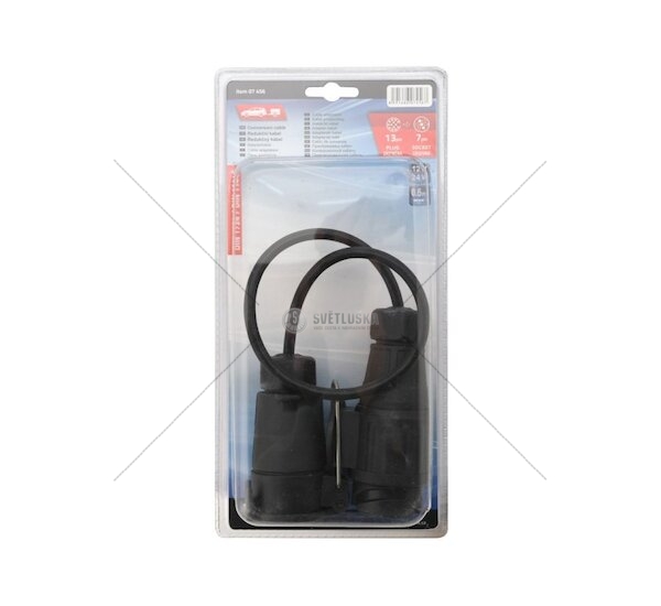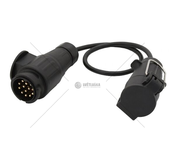 Redukční kabel v délce 60 cm (vhodný i jako redukční adaptér) pro tažná zařízení automobilu a přívěsu. Vhodné pro použití s napětím 12-24 V. Určeno pro vozidlo s třináctipólovou zásuvkou (dle DIN 11446) a přívěs se sedmipólovou zástrčkou (dle DIN 1724). Sedmipólové zásuvky a zástrčky se obvykle používají u starších vozidel a přívěsů, třináctipólové pak u nových tažných zařízení a přívěsů.
