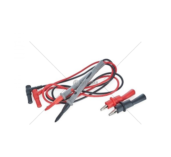 K přesnému a bezpečnému měření vám pomohou měřicí kabely o celkové délce 106 cm, určené pro elektroměry. Na jednom konci mají tyto kabely úhlové zástrčky se stíněnými hroty o průměru 4 mm, zajišťující stabilní a bezpečné připojení k multimetru.