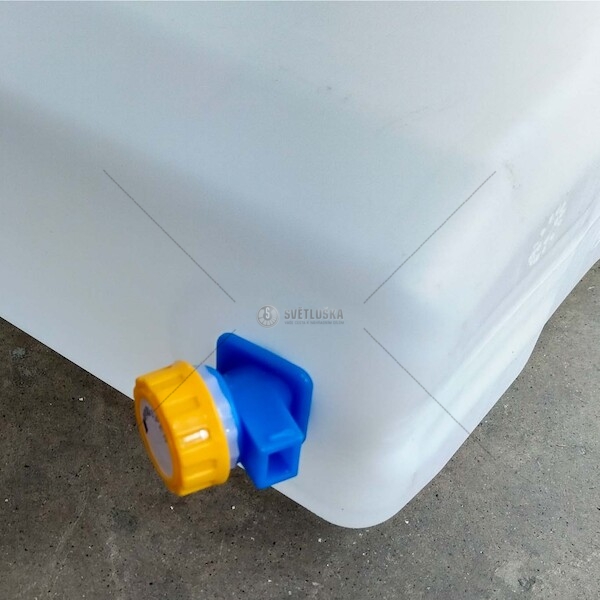 - odolný plastový kohout se závitem - trvale připevněný ke spodní části nádoby