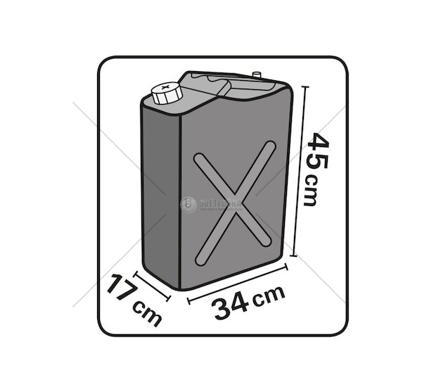 - kanystr je vhodný pro skladování a přepravu benzínu, nafty a produktů na bázi oleje