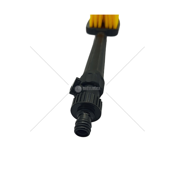 Speciální rozdělení štětin zajišťuje šetrné a zároveň účinné mytí. Kartáč je navíc vybaven tryskou pro připojení k vodnímu zdroji, což umožňuje snadnější a rychlejší práci při mytí automobilu.