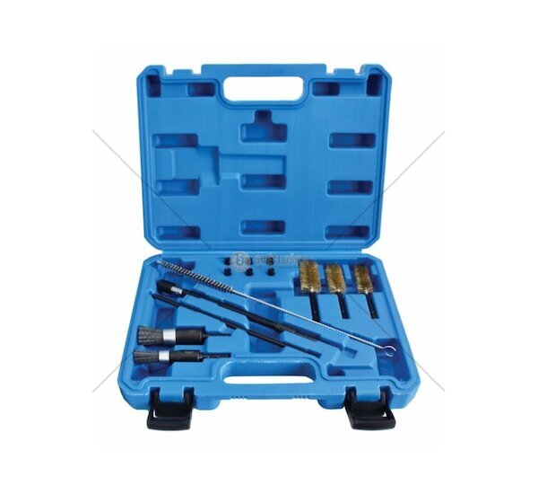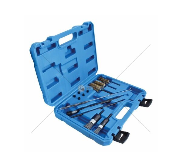 Sada čisticích kartáčů SATRA S-14DIB pro důkladné očištění dosedacích sedel vstřikovačů dieselových motorů. Kompletní 14dílná sada v praktickém plastovém kufříku obsahuje kartáče různých velikostí, čistič trysek i montážní příslušenství. Nezbytný nástroj pro precizní servis vstřikovacích systémů.