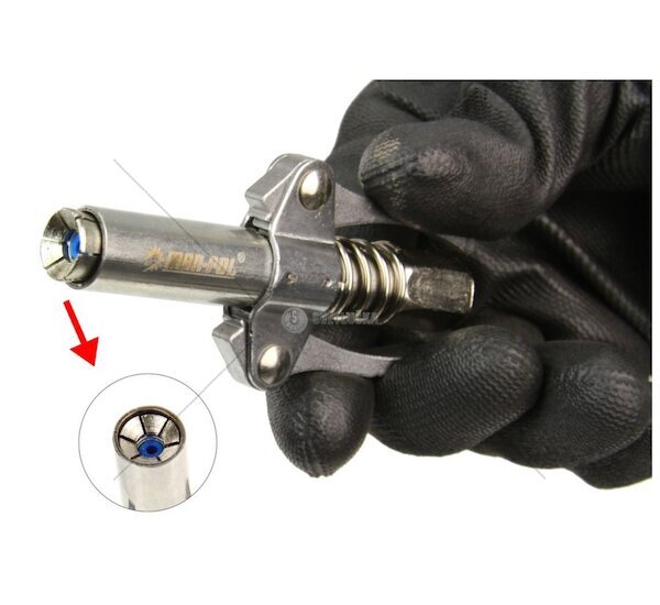 Samosvorná koncovka pro maznice umožňuje rychlé a snadné mazání dílů během údržby bez zbytečné ztráty tuku. Samosvorný mechanismus umožňuje mazání bez nutnosti přidržovat a tlačit špičku proti mazací hlavici.