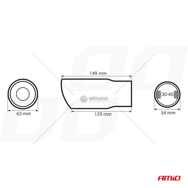 Koncovka výfuku, chromová z nerezavějící oceli. Vnitřní montážní rozměr: 32 - 44 mm