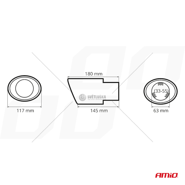 Koncovka výfuku, chromová z nerezavějící oceli. Vnitřní montážní rozměr: 33 - 55 mm