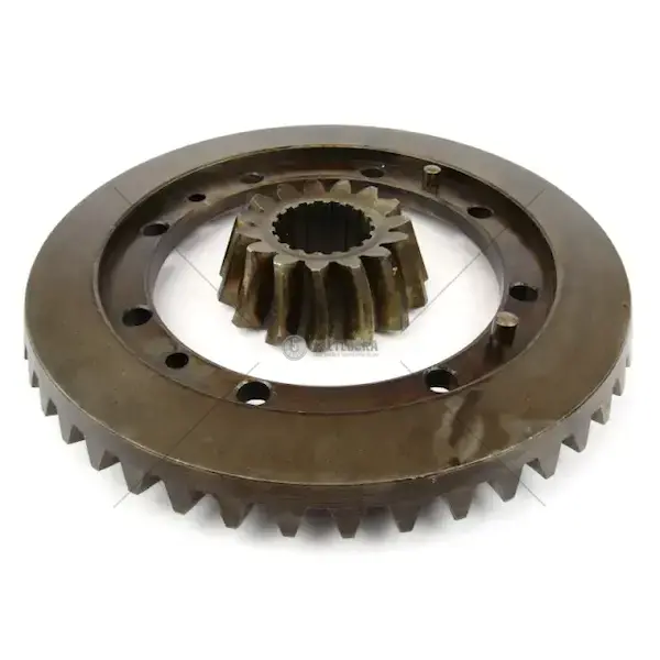 Korunové kolo s pastorkem S17.2844 je mechanický díl určený k přenosu točivého momentu mezi ozubenými koly v převodovém ústrojí. Slouží jako komplet korunového kola a pastorku pro obnovení přesné souhry ozubení a umožňuje odstranění vůle nebo poškození zubů vzniklých provozem, čímž obnovuje plynulý přenos síly mezi poháněnými a pohánějícími prvky.