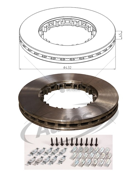 Kotouč brzdový 432x45x45 s montážní sadou pn/zn daf cf65,75,85, lf95,xf95,xf105 0080524_A