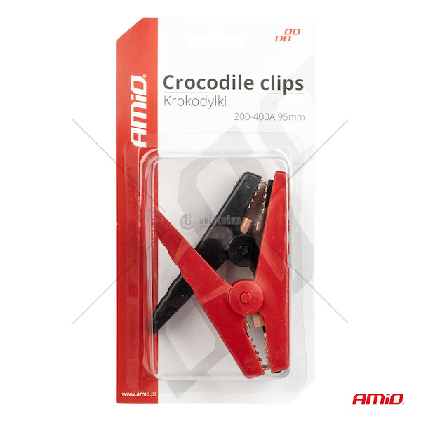 Krokosvorky velké 400A Pohodlné krokosvorky ideální pro sestavení vlastních startovacích kabelů. Mají velmi silnou pružinu, díky které se ze svorky nesklouznou. Vlastnosti: zatížitelnost: 400 A délka: 95 mm barva: červená a černá krokosvorky se prodávají v párech. Cena za 2ks - červené a černé.