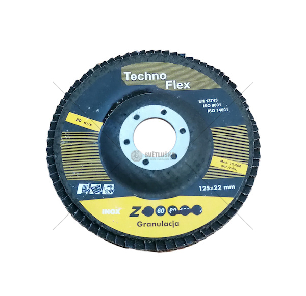 - Disk je vyroben z plátěných lamel s korundovým zrnem na disku ze skleněných vláken
