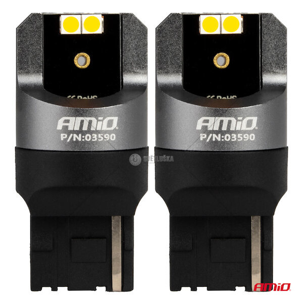 LED automobilové žárovky značky AMiO jsou moderním řešením využívajícím technologii LED diod. Použité diody vyzařují bílé světlo a jsou bez efektu blikání. Vysoká kvalita zpracování zaručuje životnost až 50 000 hodin a speciální napájecí obvod nevyžaduje úpravu elektrické instalace vozidla, což umožňuje bezproblémovou montáž do tradičních svítidel, kde se dříve používaly klasické žárovky. Použití: obrysová světla, přední poziční světla, boční směrovky, osvětlení interiéru VýHODY LED ŽáROVEK: delší životnost v porovnání se standardními žárovkami nižší spotřeba energie rychlejší zapnutí/vypnutí odolnost vůči otřesům jednoduchá montáž TECHNICKé úDAJE: napájení: 12V / 24V typ patice: WY21W typ diody: 3030 SMD počet diod: 4 barva světla: oranžová – amber zabudovaný modul CANBUS balení: 2 ks