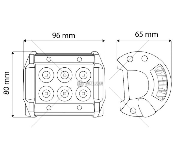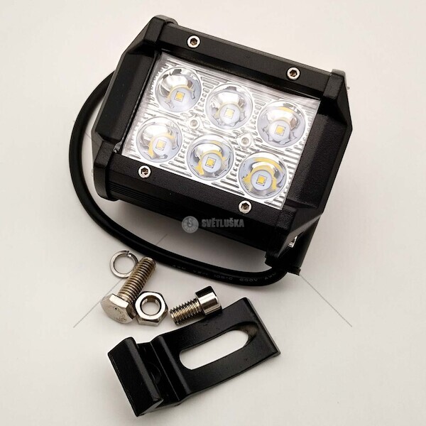 Pracovní hranatý světlomet pro pevnou montáž na šroub. Obsahuje 6 silných LED diod s dosahem až 150m.