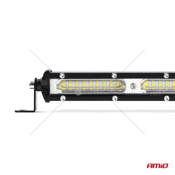 Popis produktu Pracovní lampy AMIO jsou určeny především do míst, kde jsou zapotřebí profesionální, intenzivní světelné zdroje napájené bateriemi s napětím 9 až 36V. Tyto produkty mají velmi široké uplatnění. pro terénní vozidla, ATV a UTV, pro záchranářská vozidla, zemědělská vozidla, auta, vrtulníky apod.. Díky svým parametrům a vysokému světelnému výkonu může svítidlo nahradit až 6 standardních pracovních světel. Díky použití LED technologie se svítilna vyznačuje velmi dobrým poměrem spotřebovaného výkonu k množství vyzařovaného světla. Skvěle poslouží také jako doplňkové osvětlení do auta nebo lodi. šIROKá šKáLA POUŽITí Pracovní osvětlení v zemědělských a stavebních strojích Osvětlení v terénních vozidlech Osvětlení na lodi, jachtě, plavidle Pracovní osvětlení, před garáží, přístavbou Přídavné osvětlení, nákladní auta TIR, autobusy, mikrobusy SPECIFIKACE: Schválení: E9, ECE R10 Výkon: 270W Barva světla: 6500K Světelný výkon: 21600lm Světelný tok: bodový Provozní teploty: -30 oC - +50 oC Stejnosměrné napětí: 9-36V Krytí: IP67 Nosná část: hliník Rozměry: výška: 27 mm šířka: 810 mm hloubka: 43 mm